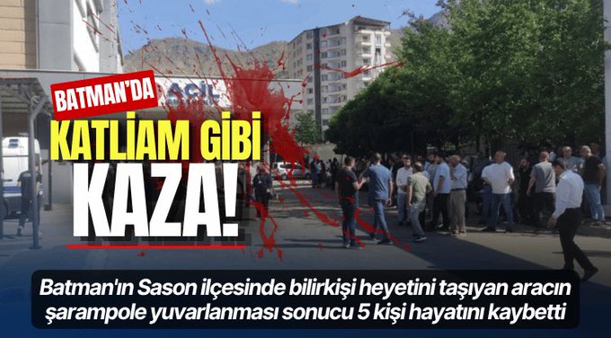 Batman Sason Mereto Dağı'nda, İdare Mahkemesi'nce yürütülen keşif ekibini taşıyan aracın uçuruma yuvarlanması sonucu, Batman Müzesi çalışanları; - Müze Müdürü Mehmet Cabir Alper, - Batman Üniversitesi’nden Dr. Öğr. Üyesi Aliye Yılmaz, - Öğr. Gör. ve Restoratör Mustafa Serdar Akgönül, - Çevre, Şehircilik ve İklim Değişikliği İl Müdürlüğü’nde görevli Mimar Fesih Barut - ve Şoför Mazlum Yılmaz’ı kaybetmenin üzüntüsünü yaşıyorum. Kültürel ve tarihi değerlerimizi yaşatmak, kayıt altına almak ve geleceğe taşımak için fedakârca emek veren kıymetli heyetin vefatı acı bir kayıptır. BHA Medya Grubu olarak hayatını kaybedenlere Allah’tan rahmet, yakınlarına sabır diliyoruz. Başımız sağ olsun.