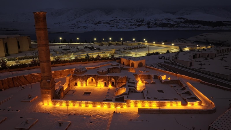 Batman’ın tarihi ilçesi Hasankeyf’te etkili olan kar yağışı, binlerce yıllık kaya yerleşimlerini, tarihi köprü ayaklarını ve anıt yapıları masalsı bir atmosfere bürüdü. Gece ışıklandırmalarıyla karın buluşması, ilçenin eşsiz siluetini daha da ön plana çıkararak görsel bir şölen sundu. Özellikle Dicle Nehri çevresinde oluşan manzaralar, beyaz örtüyle kaplanan tarihi yapılarla birleşince izleyenleri kendine hayran bıraktı. Tarih ve doğanın kusursuz uyumu, Hasankeyf’i bir kez daha fotoğraf tutkunlarının ve doğa severlerin odağı haline getirdi. Ortaya çıkan bu büyüleyici görüntüler, hem ilçe sakinlerinden hem de sosyal medyada paylaşılan kareleri izleyenlerden büyük beğeni topladı. Hasankeyf, kışın sessizliği içinde geçmişin ihtişamını bir kez daha gözler önüne serdi.