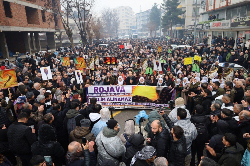 Yürüyüş, Atatürk Parkı karşısındaki Worldmar önünde toplanan kitleyle başladı. DBP Eş Genel Başkanı Keskin Bayındır, DEM Parti ve DBP’nin il, ilçe ve belde yöneticileri ile çok sayıda vatandaşın katıldığı yürüyüş, geniş güvenlik önlemleri altında sürdü. Kadınların taşıdığı dövizlerde, örgülü saçlarıyla betimlenen genç kadın figürleri ve Rojava’da yaşamını yitiren kadınları simgeleyen görseller dikkat çekti. Yürüyüş, 8 Mart Kadın Parkı’nda son buldu.