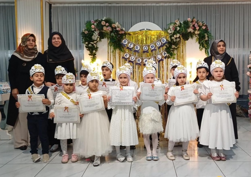 Batman İl Müftülüğü’ne bağlı Bahçelievler Camii 4-6 yaş Kur’an kursunda eğitim gören öğrenciler için anlamlı bir program düzenlendi. Kur’an-ı Kerim okumaya geçen minik öğrenciler, düzenlenen törende belgelerini aldı. Törene katılan İl Müftü Yardımcısı Halime Esra Özdemir, eğitim süreçlerini başarıyla tamamlayan öğrencileri tebrik ederek belgelerini takdim etti. Programda konuşan Özdemir, erken yaşta Kur’an eğitiminin önemine dikkat çekerek, öğrencilerin yetişmesinde emeği bulunan öğreticilere ve velilere teşekkür etti. Duygu dolu anların yaşandığı program, öğrencilerin Kur’an-ı Kerim’e geçişlerinin taçlandırılmasıyla sona erdi.