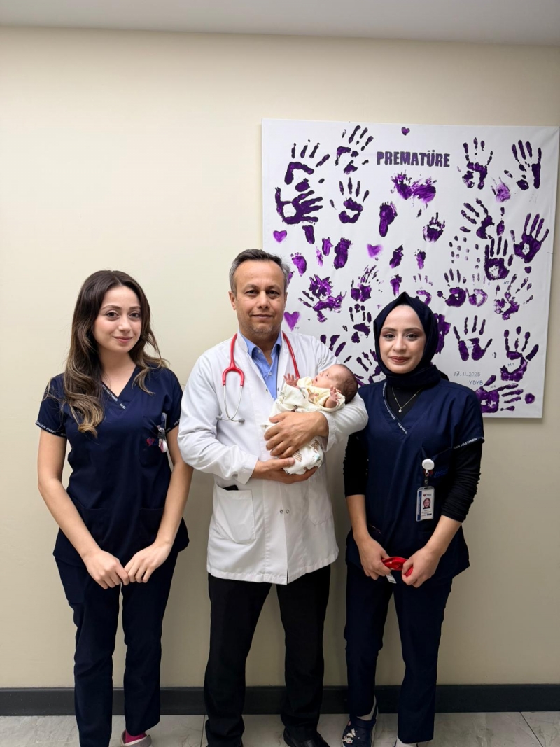 Yaşam Hastanesi’nde dünyaya gelen ve 24. gebelik haftasında yalnızca 700 gram ağırlığında doğan prematüre bebek, yaklaşık 4 ay süren yoğun bakım sürecinin ardından sağlığına kavuşarak taburcu edildi.